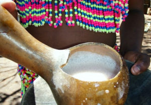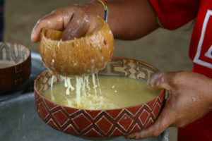 Una variante de la chicha que elaboran grupos indígenas de la región del Estado actual de Brasil. Se elabora con yuca o maíz y se endulza con jugo de fruta, y sus recetas originales datan de la época prehispánica. Es uno de los ejemplos de bebidas que se elaboran mascando y escupiendo el elemento base antes de dejarlo fermentar.