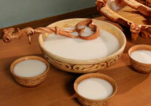 Tradicionalmente, la leche con levadura se guardaba en contenedores que se colgaban de los caballos donde se batía al cabalgar. Los pueblos asiáticos antiguos en los que era popular, la preparaban con leche de yegua.